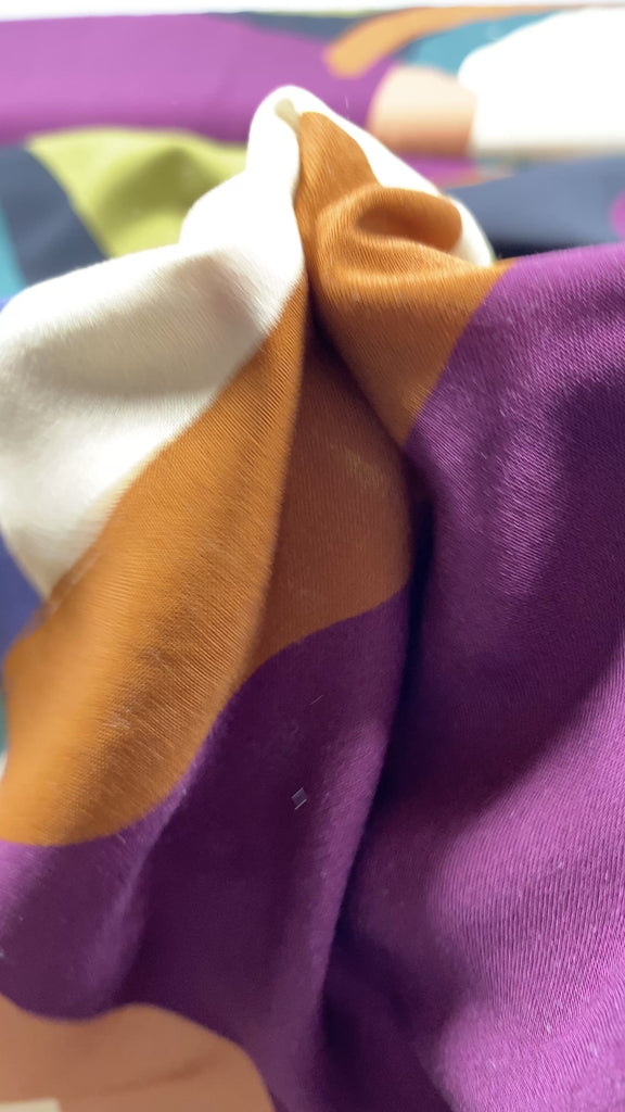 Abstrakte Viskose in Grün, Beige, Bordeaux und Blau - weich fallend, modern und wunderschön für Übergangsteile